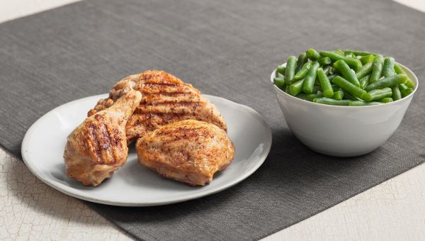 Calorie counter: One Grilled Chicken Breast, Side of Corn on the Cob and Side of Green Beans—270 calories, 7 grams of fat, 34 grams of protein.