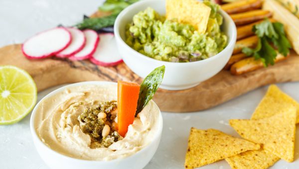 Mashed avocado also makes a great dip for sliced veggies, a creamy sandwich spread, or a healthier chicken or tuna salad mix-in. This soft, green fruit is loaded with heart-healthy fats, fiber and vitamins, but it's also calorie dense, so don't overdo it. To create a single serving of a guacamole-style dip or spread, mash a quarter of an avocado with a bit of salt and pepper, 1 tablespoon of diced tomato, 1 teaspoon of diced onion and a squeeze of lime juice. For a kick, sprinkle in crushed red pepper flakes. The mix contains fewer than 85 calories.