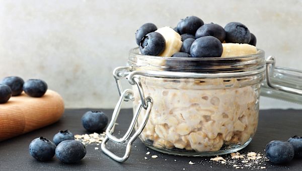 A busy morning doesn’t have to be an excuse to skip breakfast. Overnight oats are a quick and versatile a.m. option that can be prepped the night before and enjoyed on the go. In a jar or airtight container, combine one part oats with two parts liquid of choice—water, nonfat milk, and unsweetened almond milk are good options.
