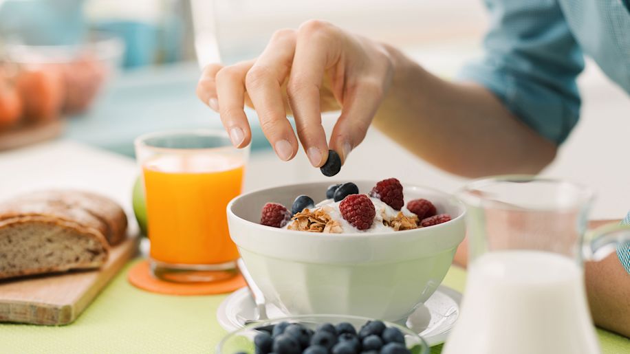 - Try to incorporate some colorful, nutrient-packed fruits or vegetables such as leafy greens, broccoli, or berries to each meal.